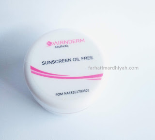 Produk Airin punya beberapa jenis Sunscreen, berhubung ketika konsultasi aku menjelaskan bahwa kulitku tipe oily, sunscreen yang diberikan oleh admin jenis oil free. Admin Airin menjelaskan Sunscreen oil free ini punya kandungan SPF 30 dan bisa bertahan selama 5 jam.