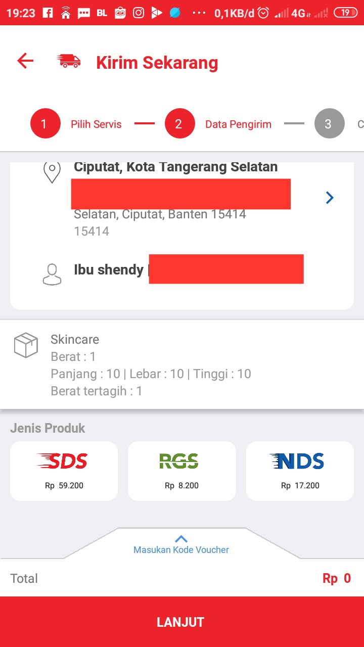 Layanan yang saya pilih Store to Home dengan produk pengiriman NDS menuju Tangerang. Biaya NDS sampai ke rumah penerima paket hanya 17.500, murah banget karena besoknya langsung sampai.