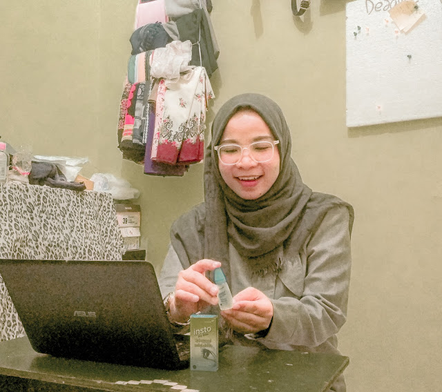 Nah, pas saya hubungi teman saya, obat apa yang cocok, lalu saya direkomendasikan untuk mencoba teteskan kedua mata saya dengan Insto Dry Eyes, karena berdasarkan keluhan yang saya ceritakan ternyata saya mengalami gejala mata kering.