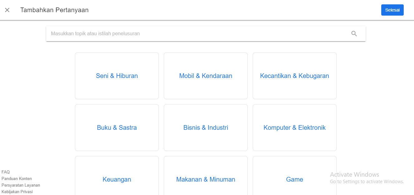 Terlebih dahulu kalian harus memastikan sudah pasang Search Console yang suda terverifikasi, email yang digunakan juga terdaftar digunakan pada blog kalian. Question Hub dapat digunakan baik untuk pengguna blogspot ataupun wordpress, asalkan sudah terpasang Search Console dapat memanfaaatkan aplikasi ini.