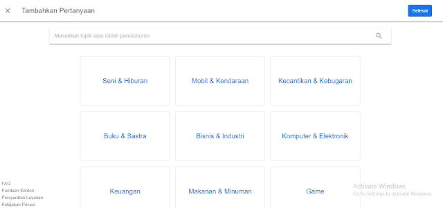 Setelah terdaftar, kalian bisa langsung mencoba mencari pertanyaan tidak terjawab melalui pilihan yang tertera, dapat disesuaikan niche blog apa yang kerap ditulis misalnya kalau kamu travel blogger dapat memilih perjalanan lalu bisa disesuaikan pilihan kata kunci pertanyaan dengan konten yang telah kamu publish.