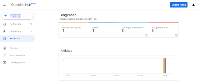 Nah, Question Hub ini bisa meningkatkan jumlah pengunjung organik dari tulisan Blogger. Sebelum Google Plus ditutup, biasanya blogger memanfaatkan laman G+ untuk menanam link, Question menggantikan posisi G+. Blogger tugasnya hanya menjawab pertanyaan yang ada di Question Hub dengan memberikan link artikelnya.