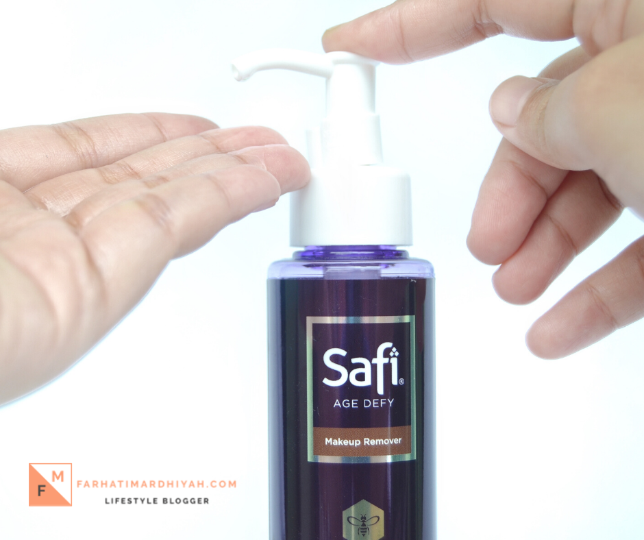 Cara pakai Safi Age Defy Make Up Remover gampang banget. Pump isinya dari botol, lalu aplikasikan ke wajah dalam keadaan kering menggunakan telapak tangan, lalu pijat lembut secara merata. Berikan sediki air sampai memastikan tidak ada make up ataupun debu yang tersisa, bilas hingga bersih.