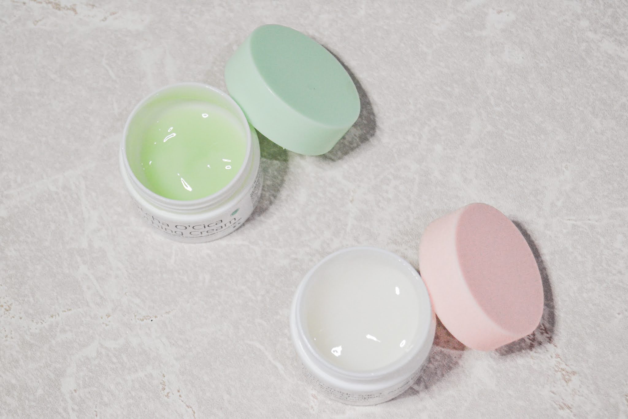 Keduanya hanya dibedakan dengan warna tutup jar, hijau pastel untuk Matcha O'Cica Soothing Cream dan peach untuk Niacinamide 4% + Turmenic + Propolis Advanced Luminous Cream.