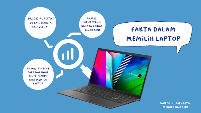 Maka itu, memilih Laptop juga harus mempertimbangkan kualitas teknologi layarnya juga. Terbukti nih dari survey yang dilakuakn Detik Network bersama ASUS, lebih dari 500 responden sebanyak 80.20% mengatakan pengaruh kualitas detail warna dan visual pada layar laptop sangat penting.