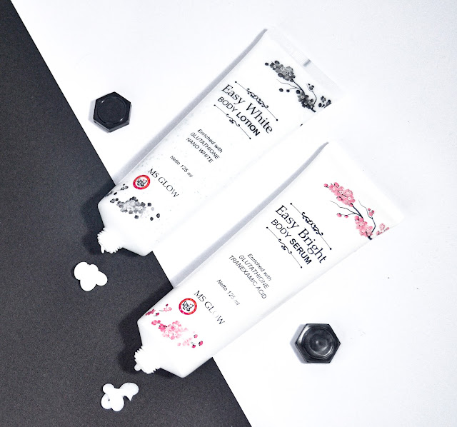 Review Pencerah Kulit Belang Menggunakan Easy White Body Lotion MS GLOW dan Easy Bright Body Serum MS GLOW