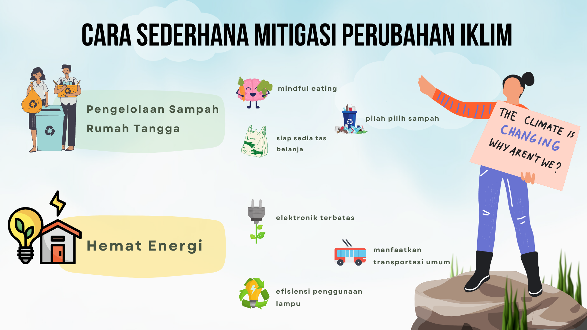 So, mulai dari hal kecil dan sederhana saja yuk kita ubah kesadaran diri untuk melakukan mitigasi perubahan iklim. Apa saja sih yang bisa dilakukan?