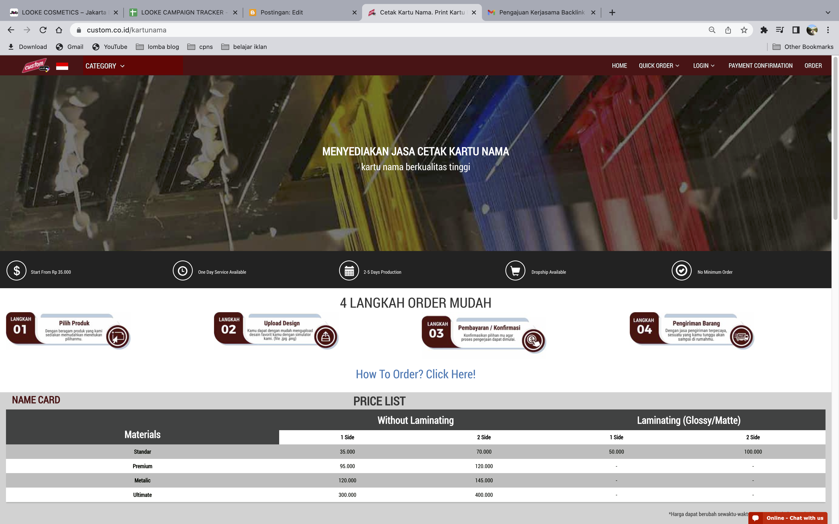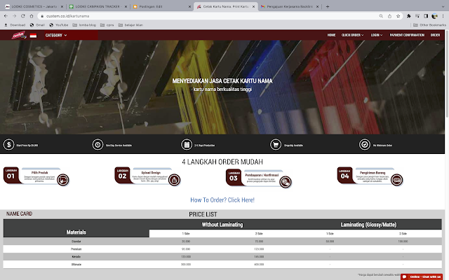 Harga bikin kartu nama disini lebih murah, setiap kartu kotak nama berjumlah 96 buah mulai dari Rp 35.000-, saja. Dengan desain menarik, kamu tidak perlu segan lagi untuk menyebarkan kartu nama kepada kenalan baru.