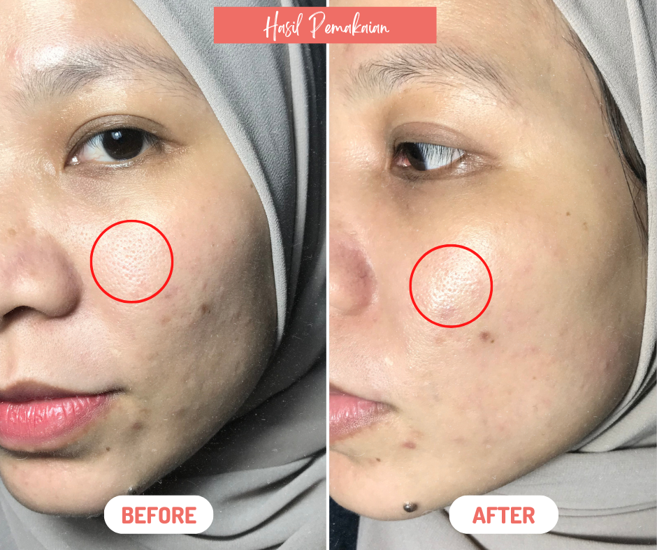 Spot pori-pori wajahku yang besar di area pipi juga beberapa hari ini aku notice, rasanya kok terlihat lebih kecil dan mulus. Apalagi setelah menggunakan serum Peptaronic, terlihat jelas area pori-porinya makin terlihat mulus.