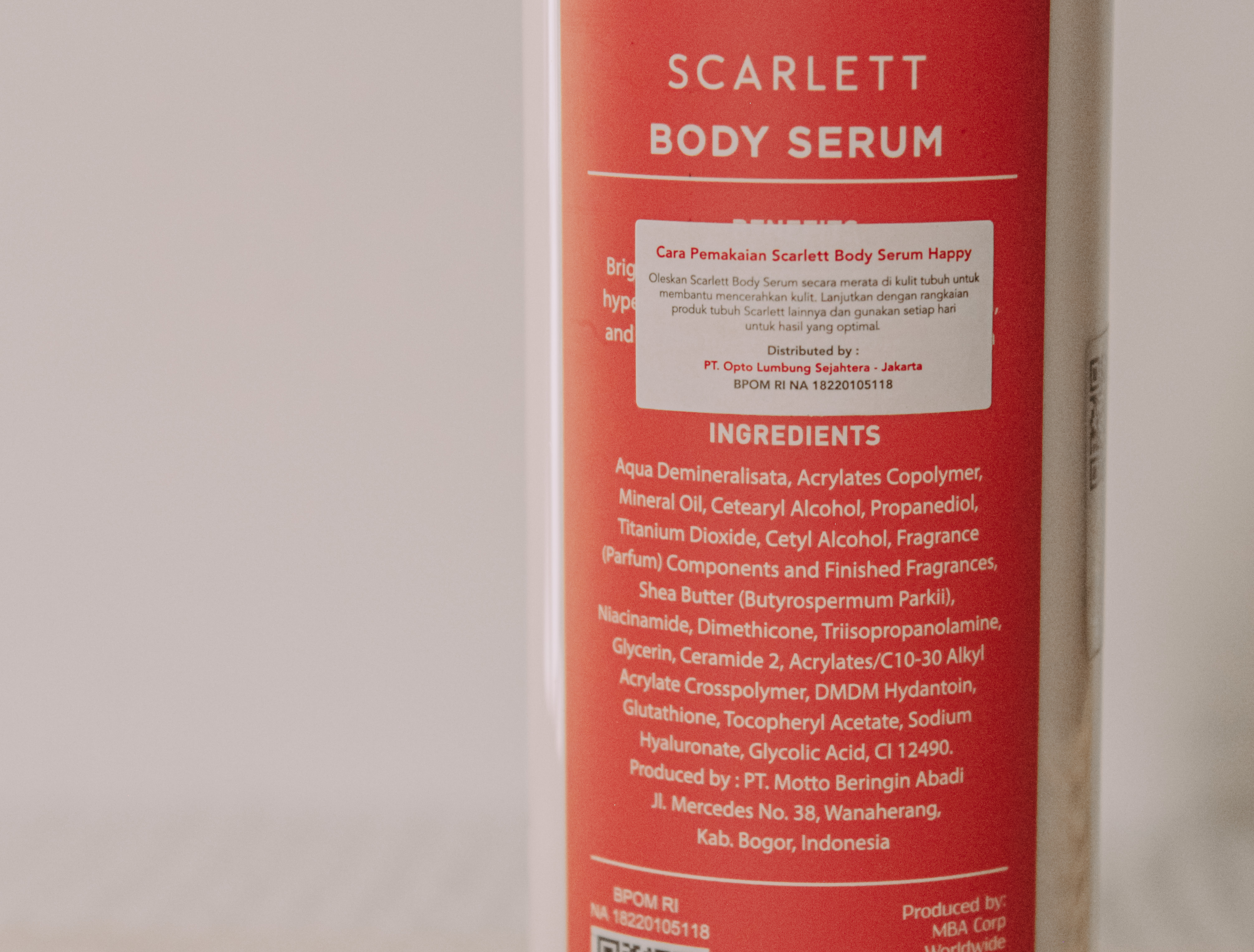 Body serum happy Scarlett bisa digunakan mulai usia 13 tahun ke atas. Produk ini halal dan sudah terdaftar di BPOM.