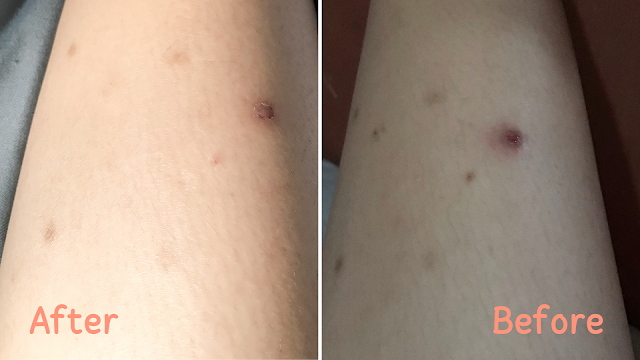 Untuk efek mencerahkan, aku notice spot noda hitam yang ada di kaki. Beberapa spot memang terlihat lebih mencerahkan sedikit, walaupun belum sepenuhnya hilang.