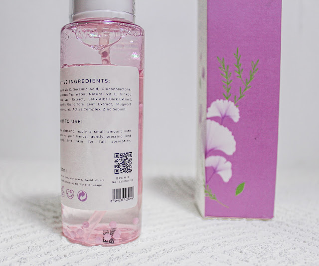 Sama dengan varian lainnya, kemasan essence toner ini juga dilengkapi dengan packaging kardus. Lalu, pada kemasan botolnya sudah dilengkapi juga informasi produk terkait cara penggunaan, ingredients, cara pemakaian, dan informasi PAO.