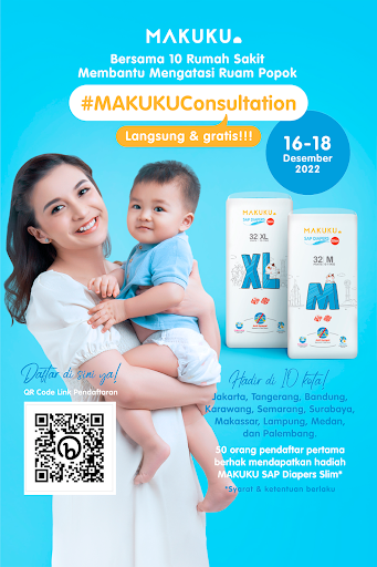 Program ini merupakan kolaborasi MAKUKU dengan 10 Rumah Sakit. Tidak hanya memberikan popok gratis, MAKUKU juga memberikan fasilitas konsultasi ibu dan anak dengan dokter spesialis anak dan kulit di 10 kota terpilih yaitu Jakarta, Tangerang, Karawang, Bandung, Semarang, Surabaya, Medan, Palembang, Lampung, dan Makassar mulai tanggal 16 Desember hingga 18 Desember 2022.