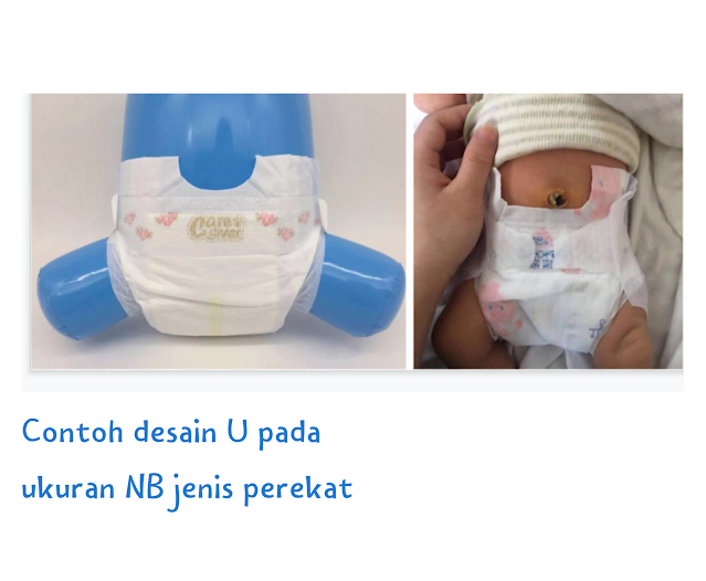 Khusus untuk ukuran NB, tersedia jenis popok perekat dengan desain berbentuk “U” pada bagian tengah. Desain ini bisa melindungi tali pusar bayi baru lahir untuk mengurangi terjadinya gesekan.