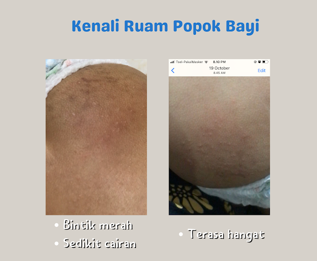 Awalnya hanya muncul di bagian bokong saja, namun area bintik merah makin menyebar di bagian pinggang, lipatan paha, sampai sekitar alat kelamin. Tidak hanya bintik merah saja, tapi tampak sedikit bengkak dan hangat ketika dipegang.