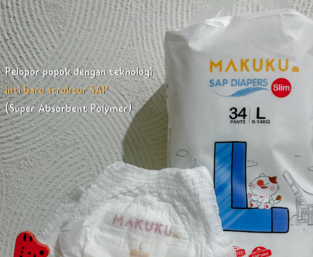 Nah, keunggulan utama dari produk MAKUKU adalah pelopor popok dengan teknologi inti baru struktur SAP (Super Absorbent Polymer). Bahan utama popok inti SAP ini yang membuat bayi lebih nyaman, anti bocor, terasa lebih ringan, dan menjaga kesehatan kulit dari ruam popok.