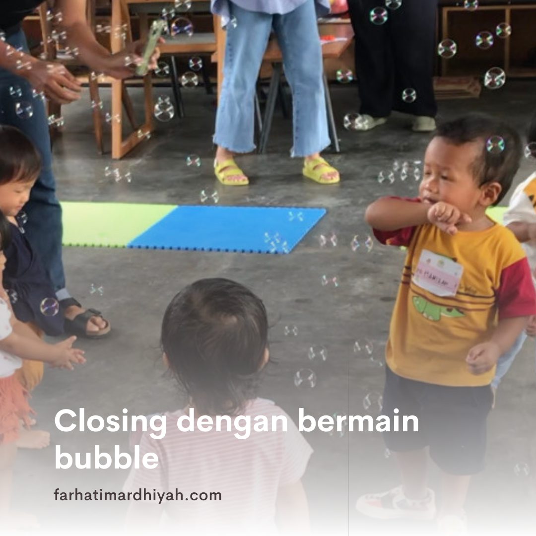 Sesi closing kelas ini ditutup dengan bermain bubble, cuma sebentar sih gak ada 5 menit tapi anak-anak super happy main balon bareng.
