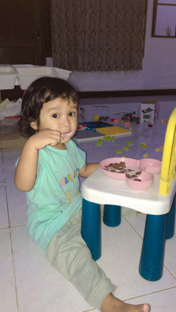 Nah, dengan ritme pola aktivitas yang seimbang ini memudahkanku saat proses menyapih. Hanya hari pertama saja Qiya nangis berontak karena mungkin kaget. Setelah dia memahami, dan jadwal menyusui hilang dalam aktivitasnya diganti dengan asyik bermain, bercerita, dan bernyanyi.
