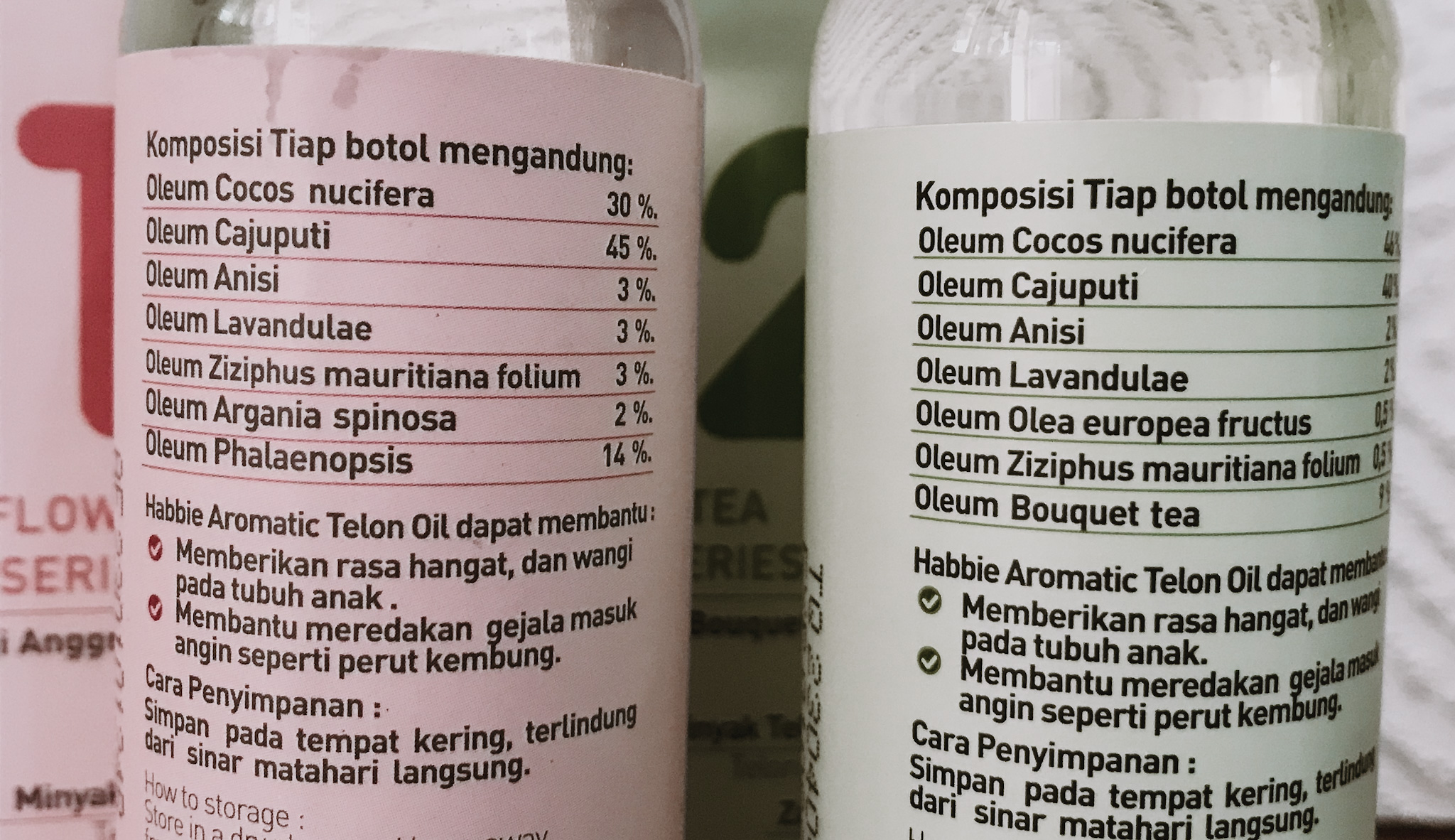 Telon Habbie sudah terdaftar BPOM dan punya label halal, selain itu memiliki kandungan alami. Bisa cek di ingredients kemasannya, bahan utama minyak telon ini adalah minyak kayu putih, minyak adas, minyak kelapa, daun bidara, dan Lavender.