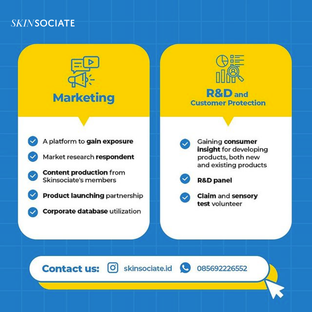 Melalui riset, peran member Skinsociate akan membantu lebih memahami perilaku konsumen mengenai klaim produk, sehingga bisa mendapatkan insight yang kredibel.
