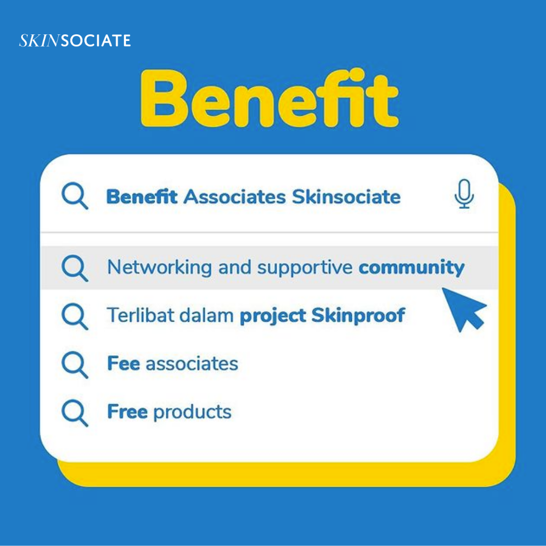 Dijelaskan oleh Theresia, “Dengan bergabung di komunitas Skinsociate, anggota komunitas memiliki berbagai keuntungan seperti berkesempatan untuk terlibat dalam riset-riset yang dilakukan Skinproof dan bisa mencoba berbagai produk baru secara gratis hingga memperoleh kompensasi atas partisipasi mereka dalam riset tertentu”