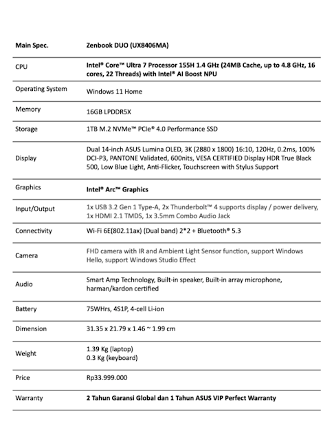 Semoga bisa segera upgrade laptop dua layar terbaik ini. Berminat juga? Harga ASUS Zenbook DUO ini mulai Rp33.999.000. Bisa dibeli melalui webstore ASUS atau offline store mitra resmi yang tersebar di seluruh Indonesia.