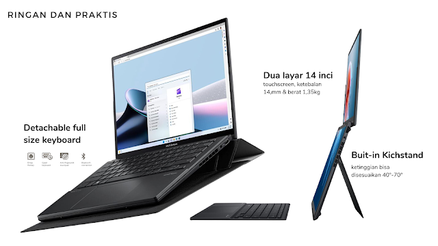 Kebutuhan mobilitas pekerjaan apapun akan terbantu dengan mode penggunaan dari layar Zenbook DUO.
