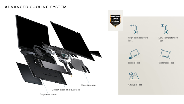 Nah, Zenbook DUO ini dilengkapi dengan tekonologi sistem pendingin canggih. Penyebar panas antara motherboard dan panel OLED bisa memungkinkan CPU dan GPU bekerja lebih ekeftif sehingga bisa mencapai potensi maksimalnya.