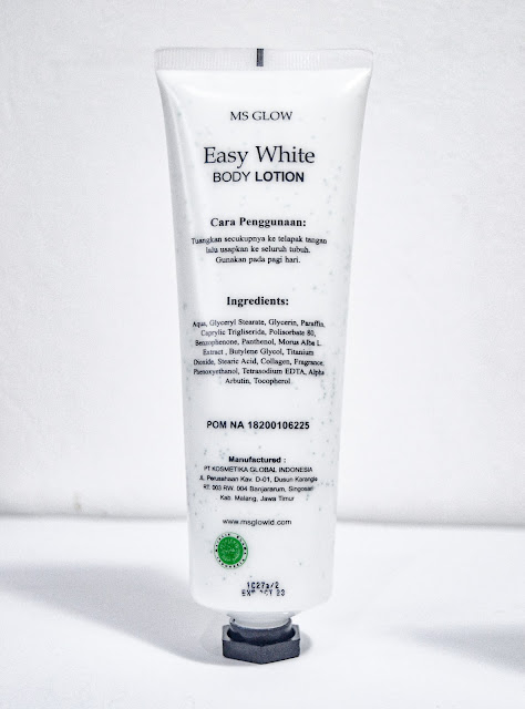 | Packaging dan ingredient list Easy Body White Lotion MS GLOW |
