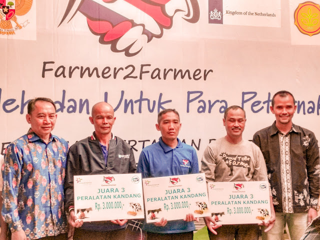 Kompetisi Farmer2Farmer 2019 ditutup dengan mengumumkan para pemenang yang berhasil berangkat ke Belanda untuk belajar langsung mengenai Good Dairy Farming Practice. Ruang Aula Pyramid, Kementerian Pertanian, diramaikan oleh para undangan peserta peternak sapi perah yang terpilih dari Pangalengan, Lembang, Tulung Agung, dan Suka Makmur.
