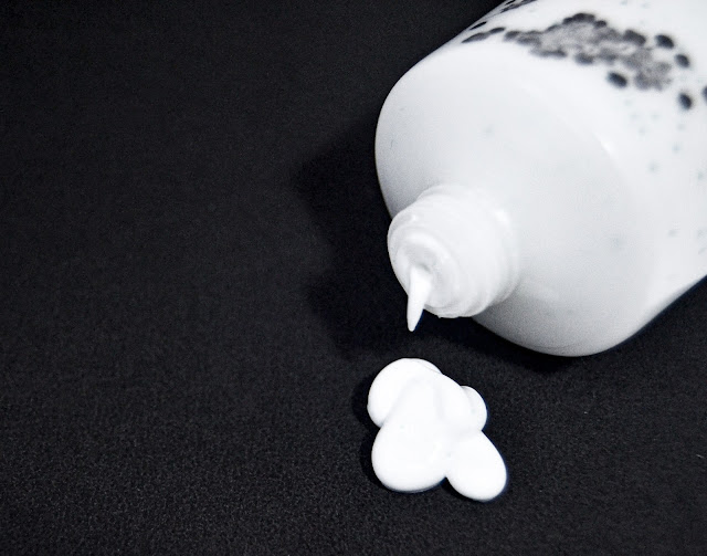 Tekstur sunscreen seperti lotion creamy berwarna putih, sejujurnya aku kurang suka dengan teksturnya karena butuh waktu untuk meresap di kulit. Aroma yang tercium juga tidak begitu menyengat, meskipun dalam komposisinya tercantum ada perfume.