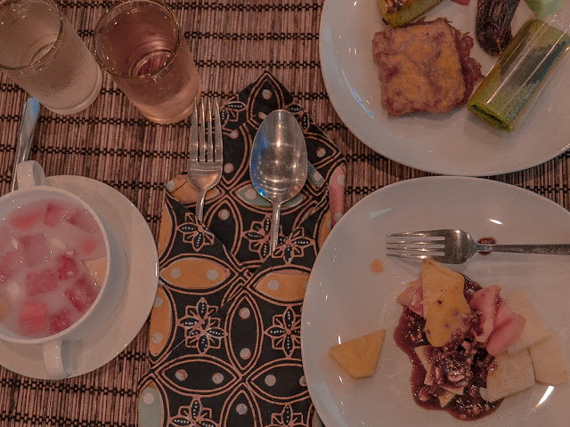 Jamuan makanan yang disediakan Freshqua Bistro sangat lezat dengan nuansa kental sunda, breakfast lengkap ada cereal, pastry, dan salad sayur maupun buah. Berhubung bulan ramadan, breakfast diambil ketika sahur, walaupun tidak selengkap menu buffet breakfast, makanannya tetap lezat.