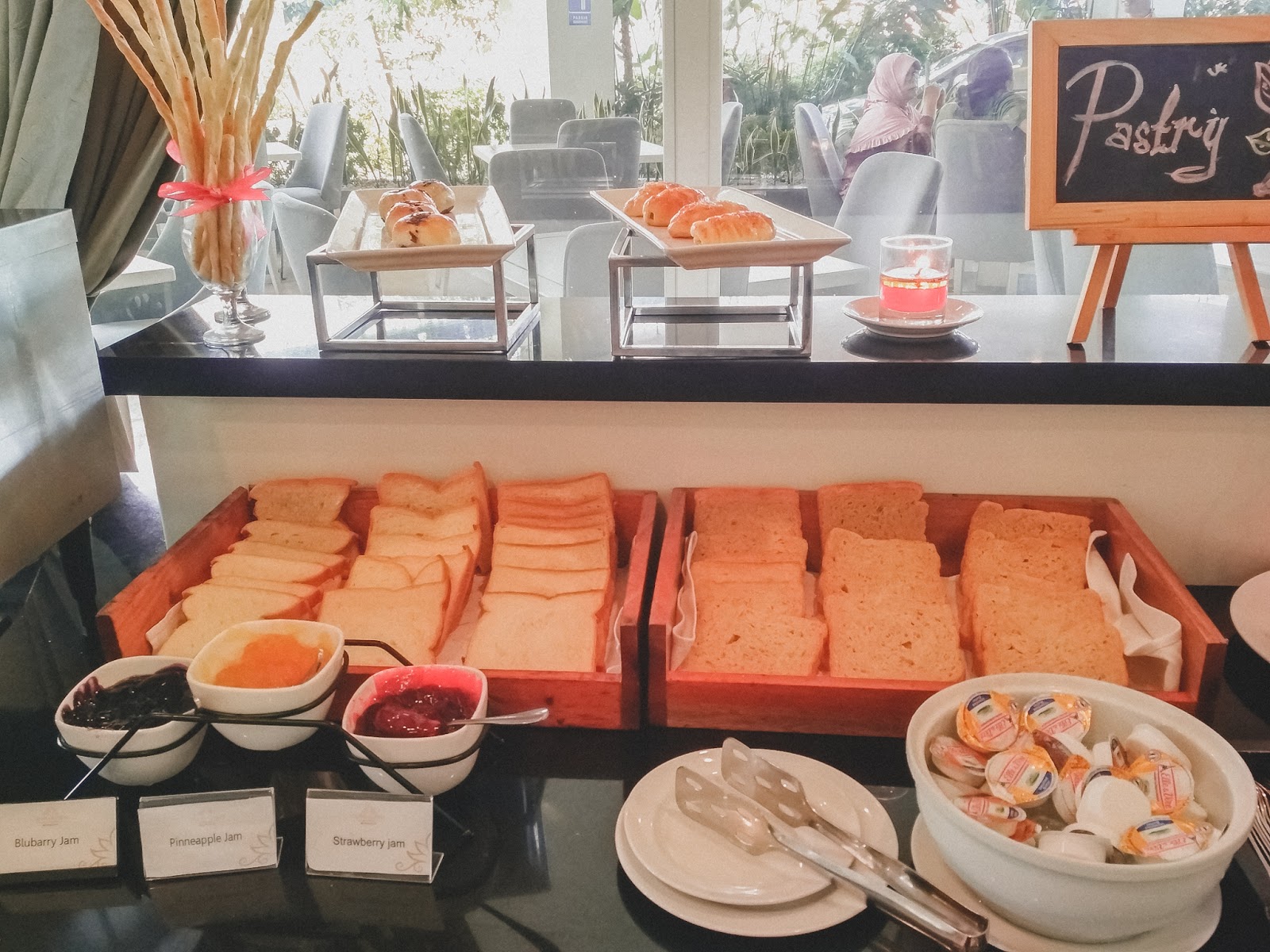 Jamuan makanan yang disediakan Freshqua Bistro sangat lezat dengan nuansa kental sunda, breakfast lengkap ada cereal, pastry, dan salad sayur maupun buah. Berhubung bulan ramadan, breakfast diambil ketika sahur, walaupun tidak selengkap menu buffet breakfast, makanannya tetap lezat.