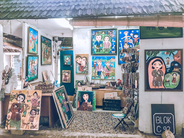 Walaupun lelah, sayang banget rasanya kalau masih terang tapi udah diem aja di kamar. Akhirnya, setelah memindahkan tas ke dalam kamar, memanfaatkan kendaraan resort, aku dan teman-temanku main ke pasar seni. Awalnya sih cuma ingin foto-foto aja di depan studio seni milik seniman dari berbagai daerah, ternyata Pasar Seni saat ini sudah lebih maju.