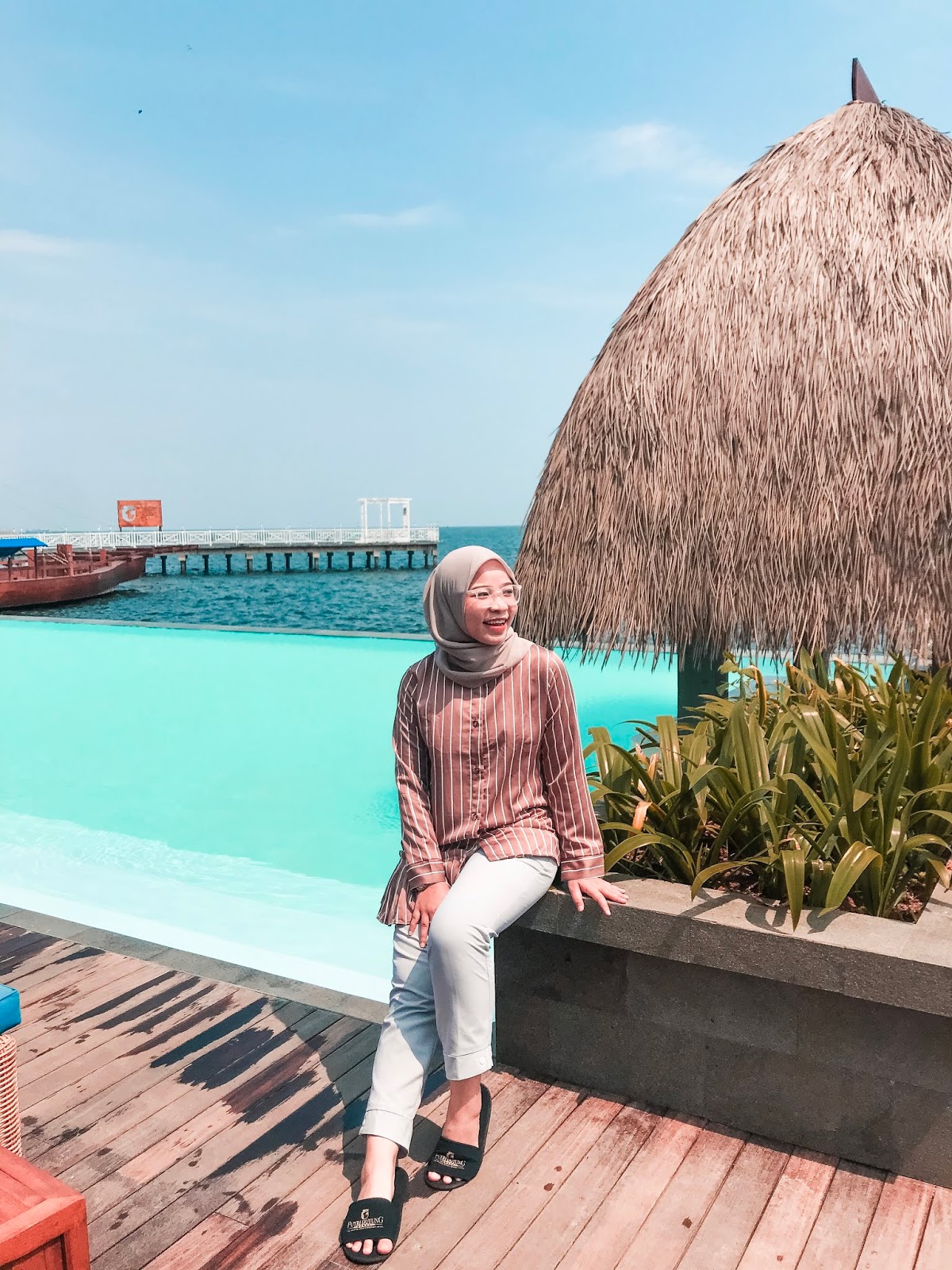 Salah satu gebrakan terbaru dari resort ini, infinity pool yang menghadap laut ala-ala beach club di Bali. Serius deh ketika kalian masuk ke daerah resort ini, serasa tidak lagi di Jakarta. Karena nuansa rindang, sejuk, desiran ombak yang menanangkan, lalu masuk ke infinity pool yang hype dan chill sambil nunggu sunset, itu beneran ada di Jakarta?.